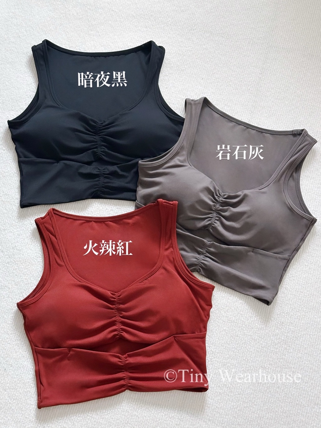 ©Tiny Wearhouse · 帶胸墊前抓皺鏤空寬肩運動背心(3色)