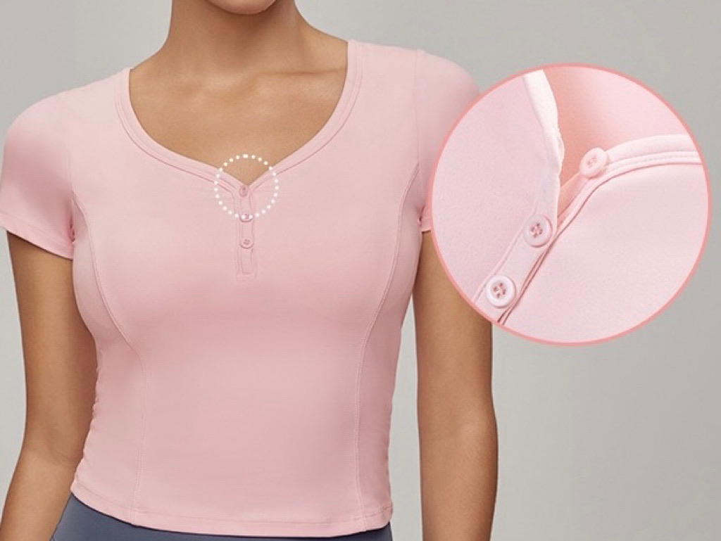 Tiny Wearhouse · 帶胸墊前排扣短袖運動上衣(兩色)🌟
