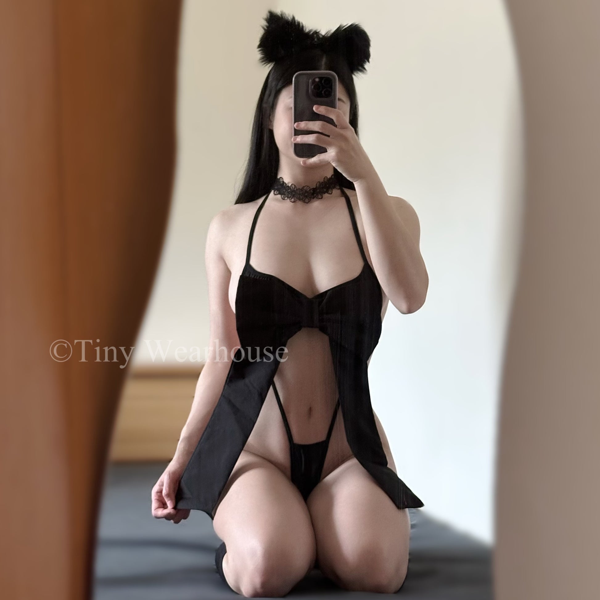 Tiny Wearhouse 小倉庫 · 大蝴蝶結開衩連身衣(黑)