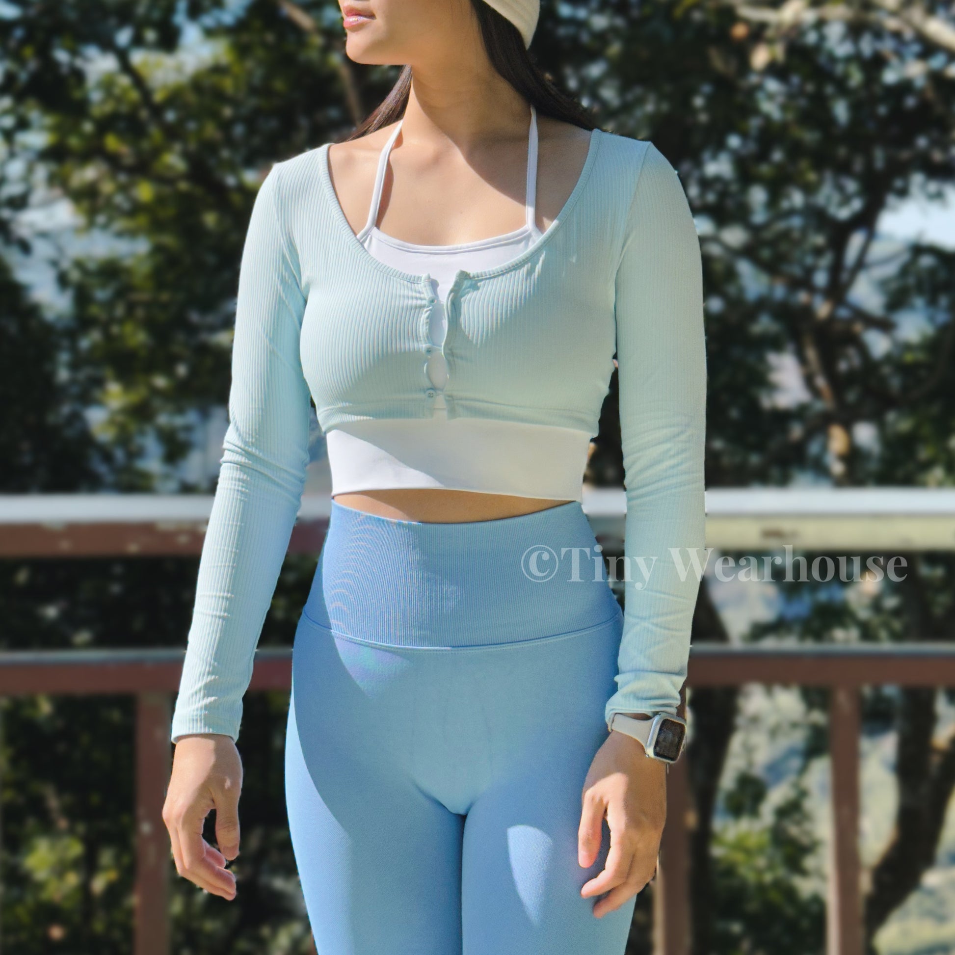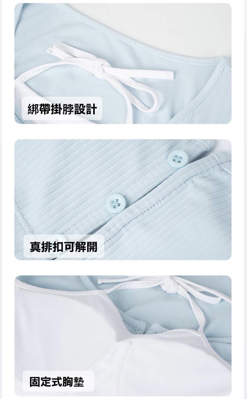 帶胸墊假兩件掛脖排扣運動上衣(2色)