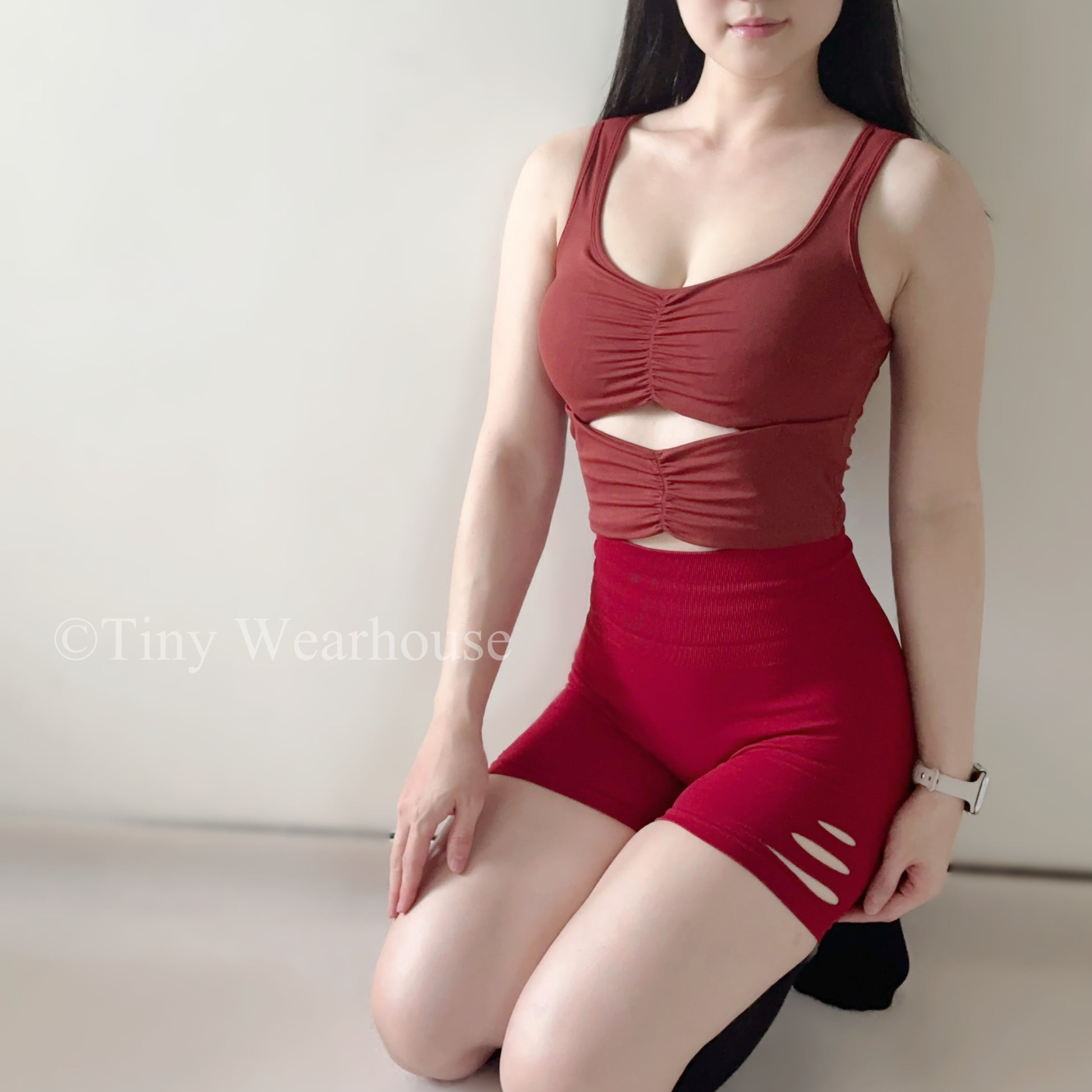 ©Tiny Wearhouse · 帶胸墊前抓皺鏤空寬肩運動背心(3色)