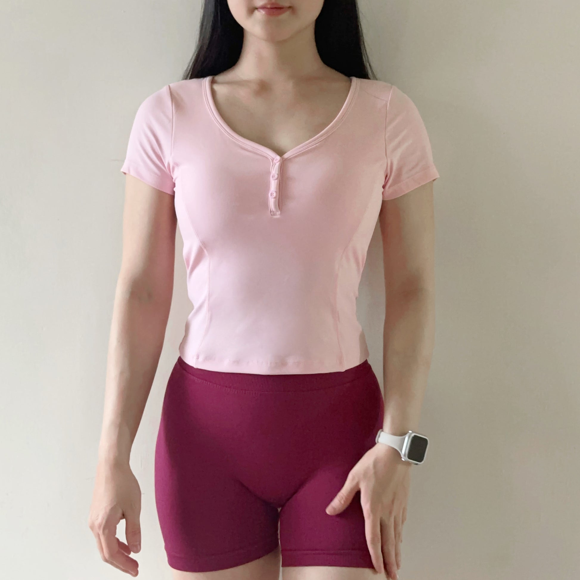 Tiny Wearhouse · 帶胸墊前排扣短袖運動上衣(兩色)🌟