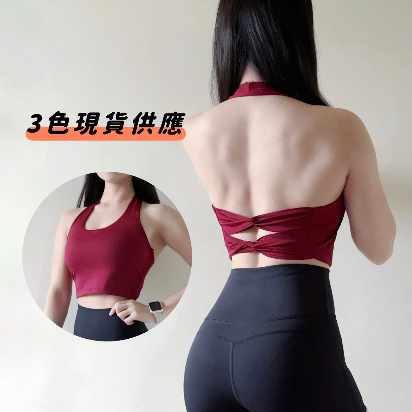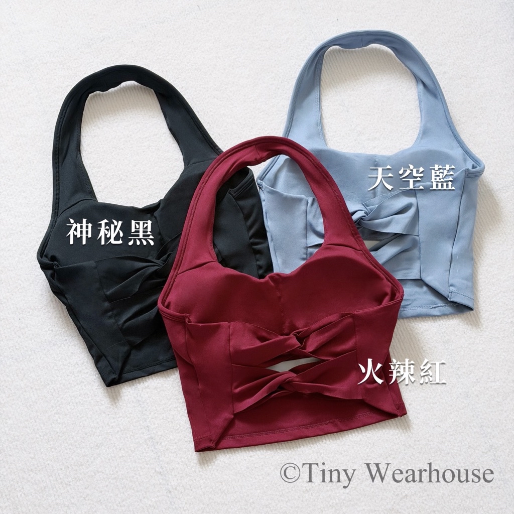 帶胸墊掛脖後鏤空運動背心(3色)