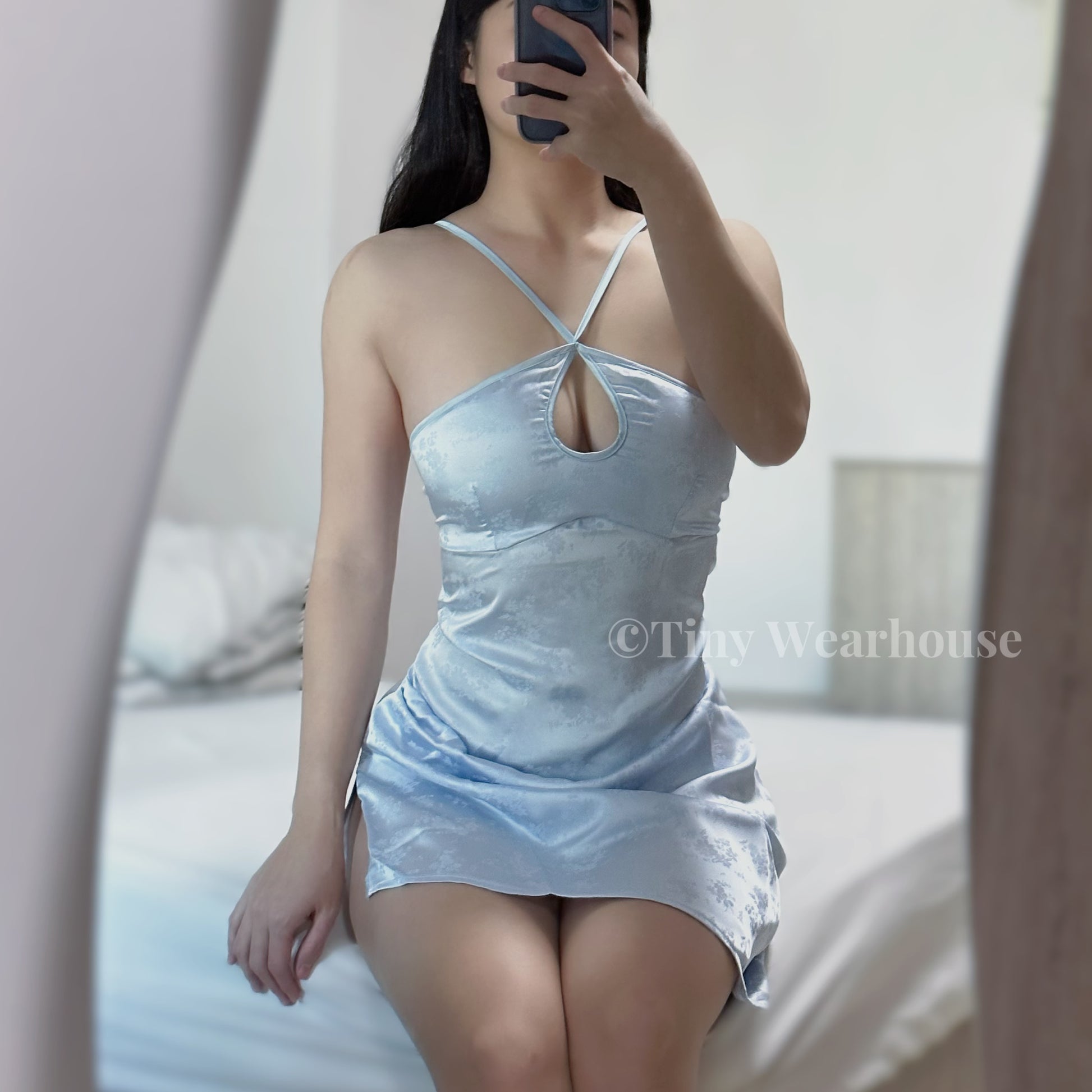 Tiny Wearhouse 小倉庫・帶胸墊掛脖緞面美背連身睡衣🌟