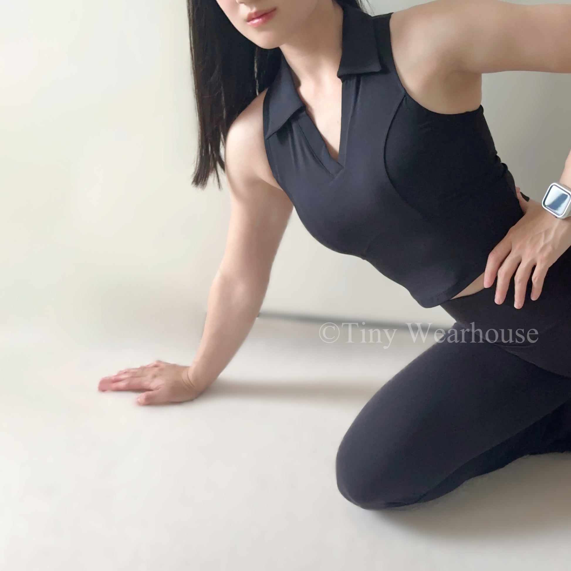 Tiny Wearhouse · 帶胸墊POLO領修身運動背心(兩色)