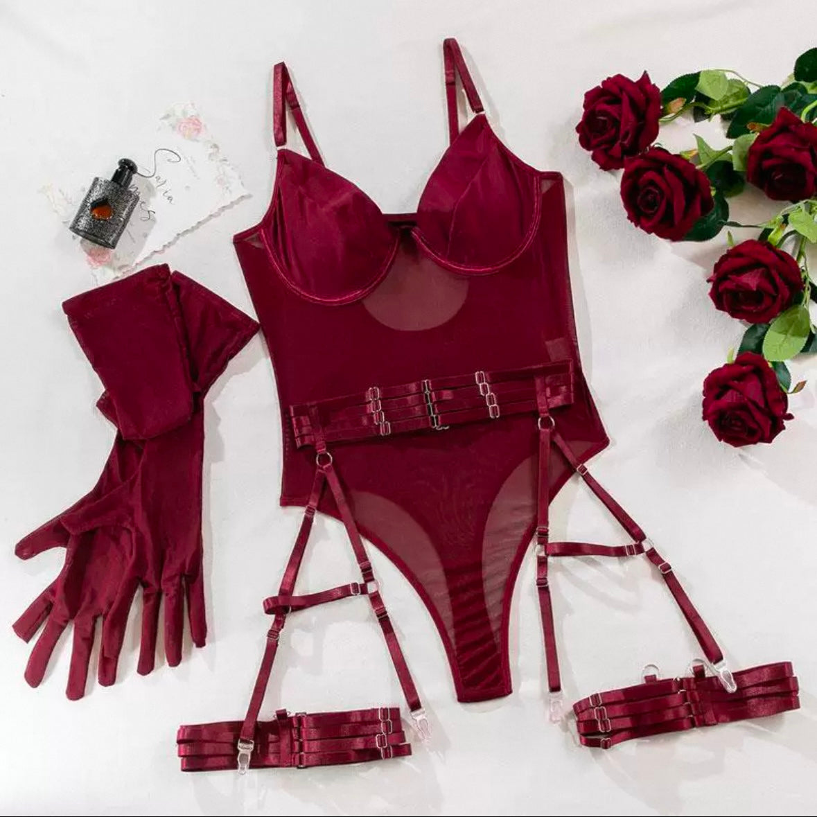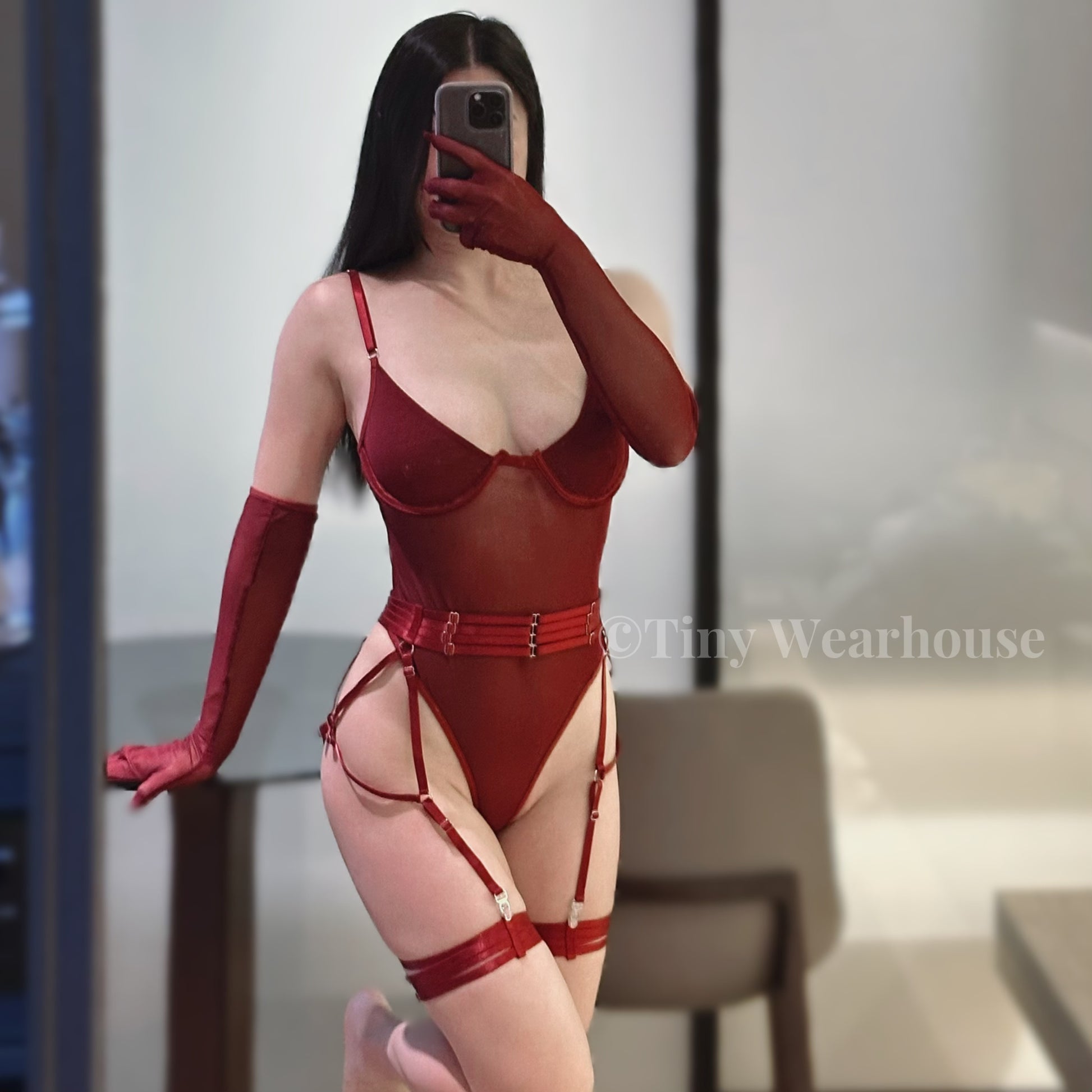 Tiny Wearhouse 小倉庫・帶鋼圈透視束腰大腿環連身衣(附手套)
