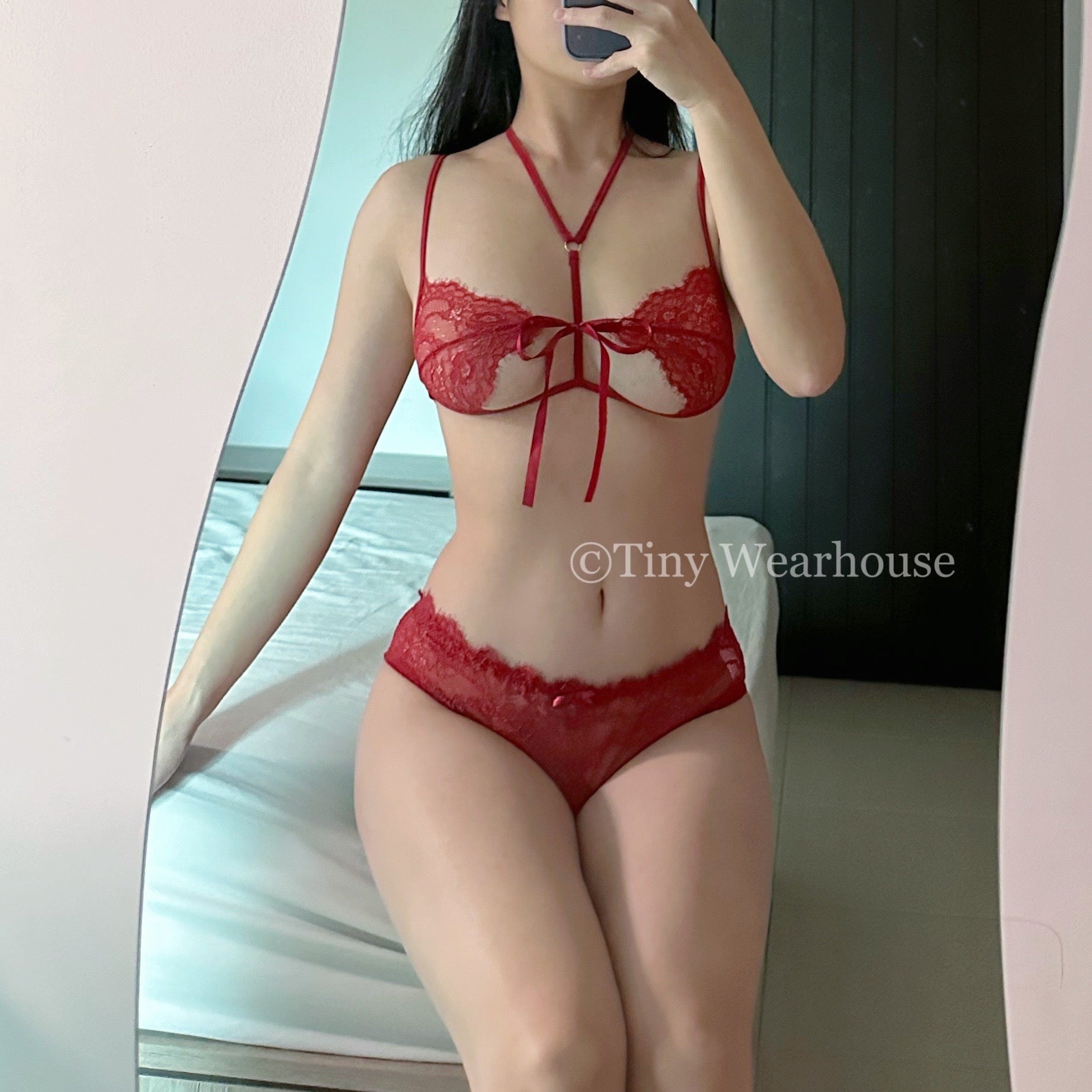 Tiny Wearhouse 小倉庫・掛脖蝴蝶結蕾絲兩件式情趣內衣🌟