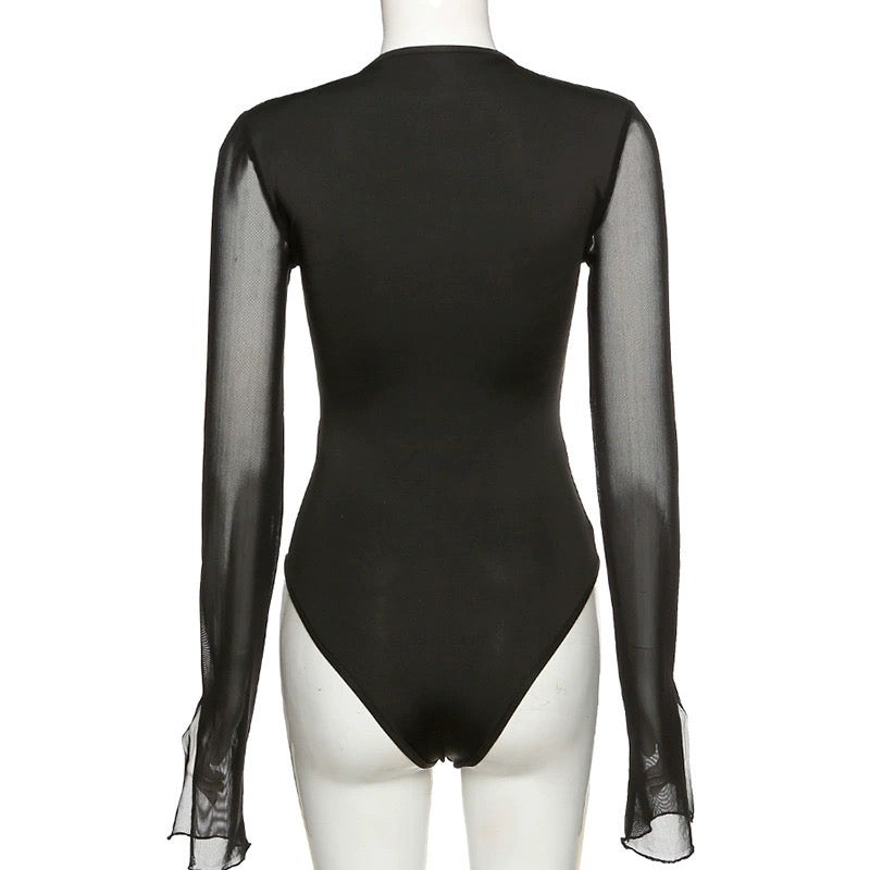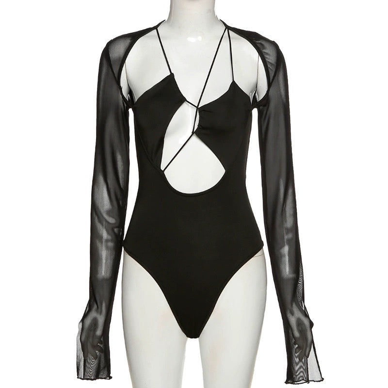 歐美暗黑不規則線條網紗連身衣
