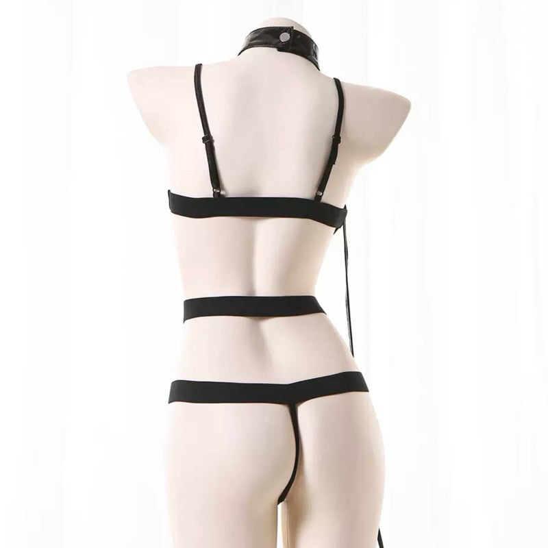 Tiny Wearhouse・皮革前拉鏈連身衣(附牽引繩&網襪)