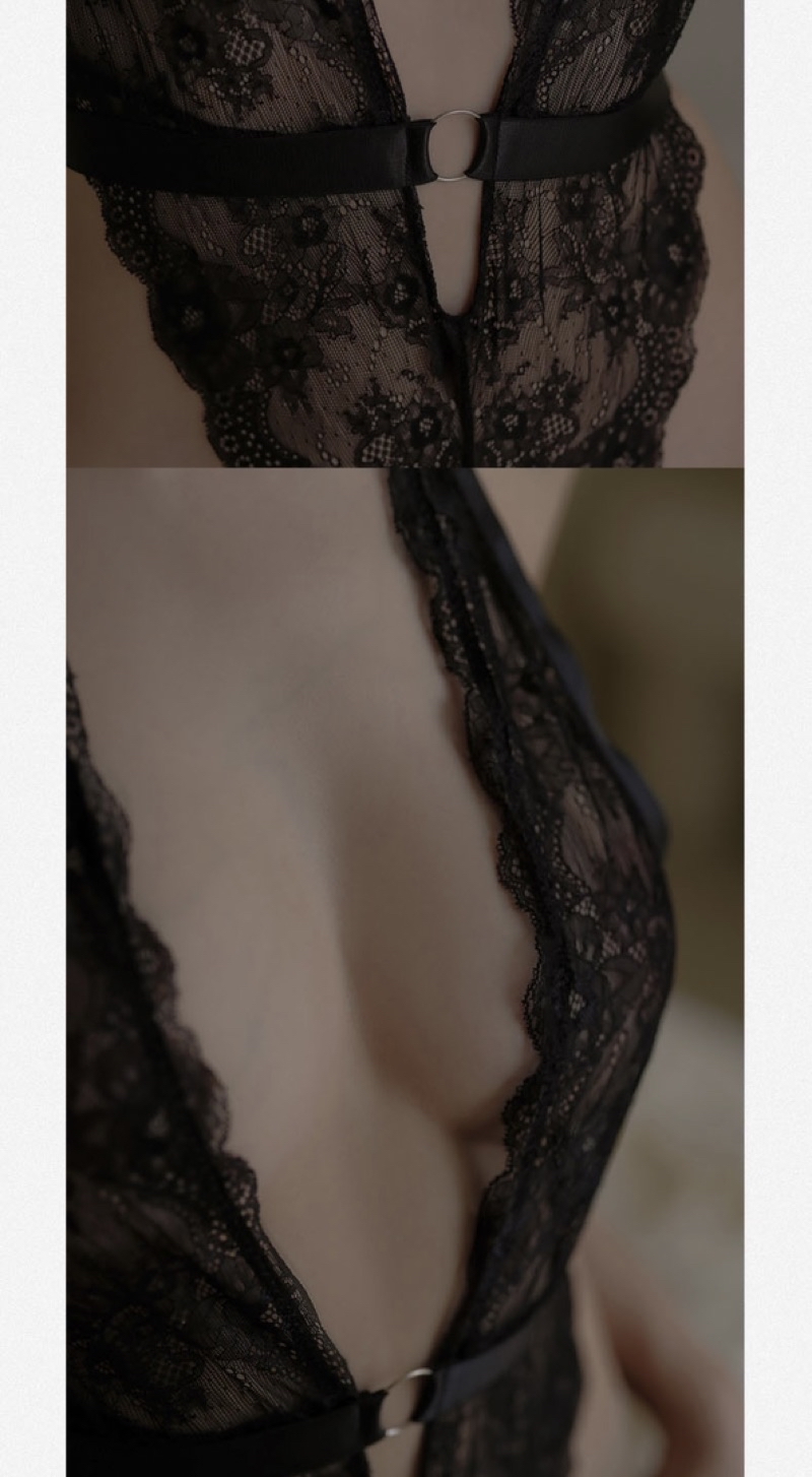 自帶大腿環深V蕾絲情趣連身衣