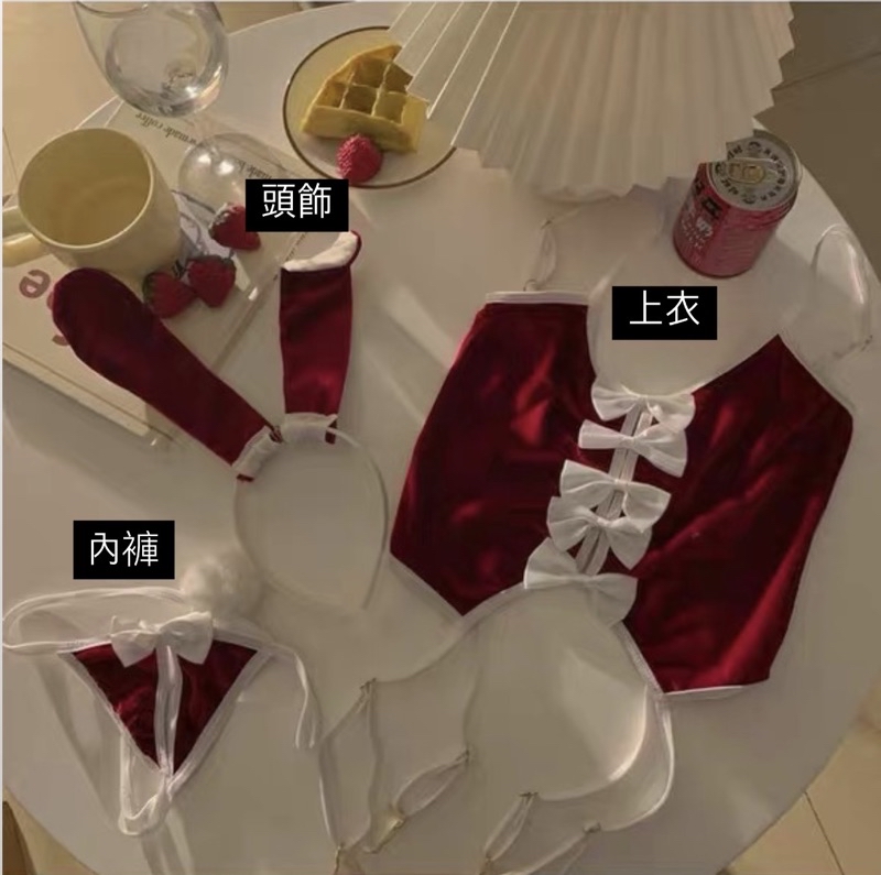 蝴蝶結開檔小兔子情趣內衣(2色)