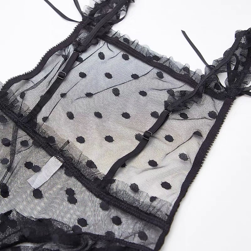 Tiny Wearhouse 小倉庫・透膚蕾絲波點開檔連身衣🌟
