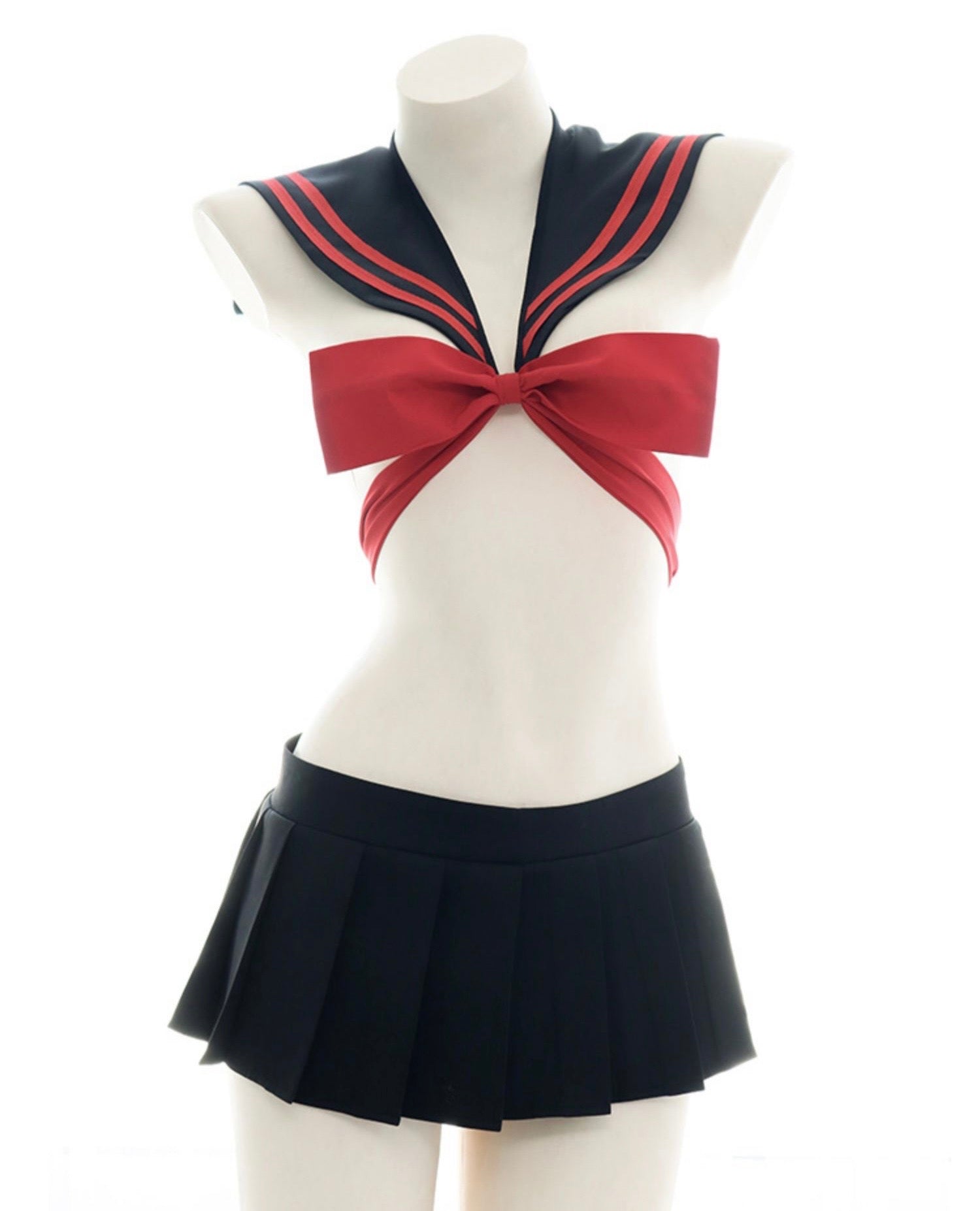 黑紅大蝴蝶結學生水手服情趣內衣