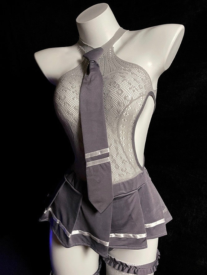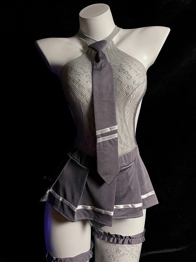 連身裙+可拆式領帶+絲襪