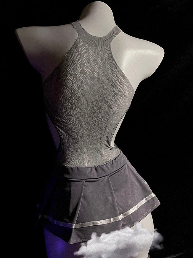 若隱若現的網狀連身百摺裙